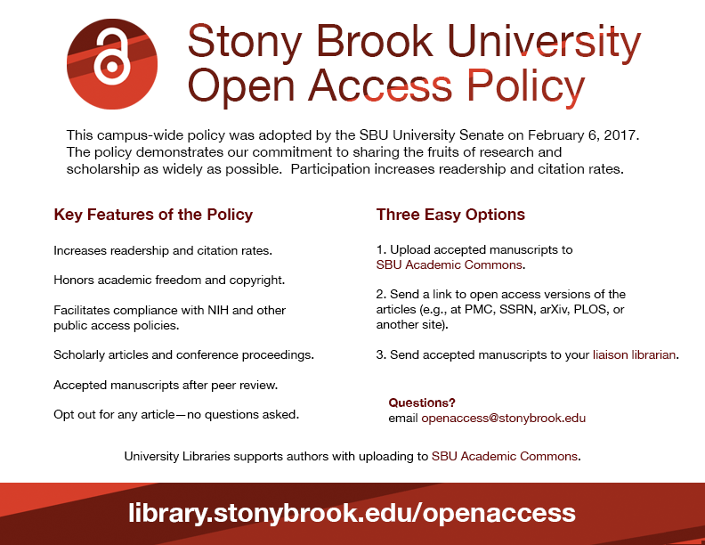 Visit library.stonybrook.edu/openaccess to see the SBU Open Access Policy, deposit your work, request a waiver, and more!