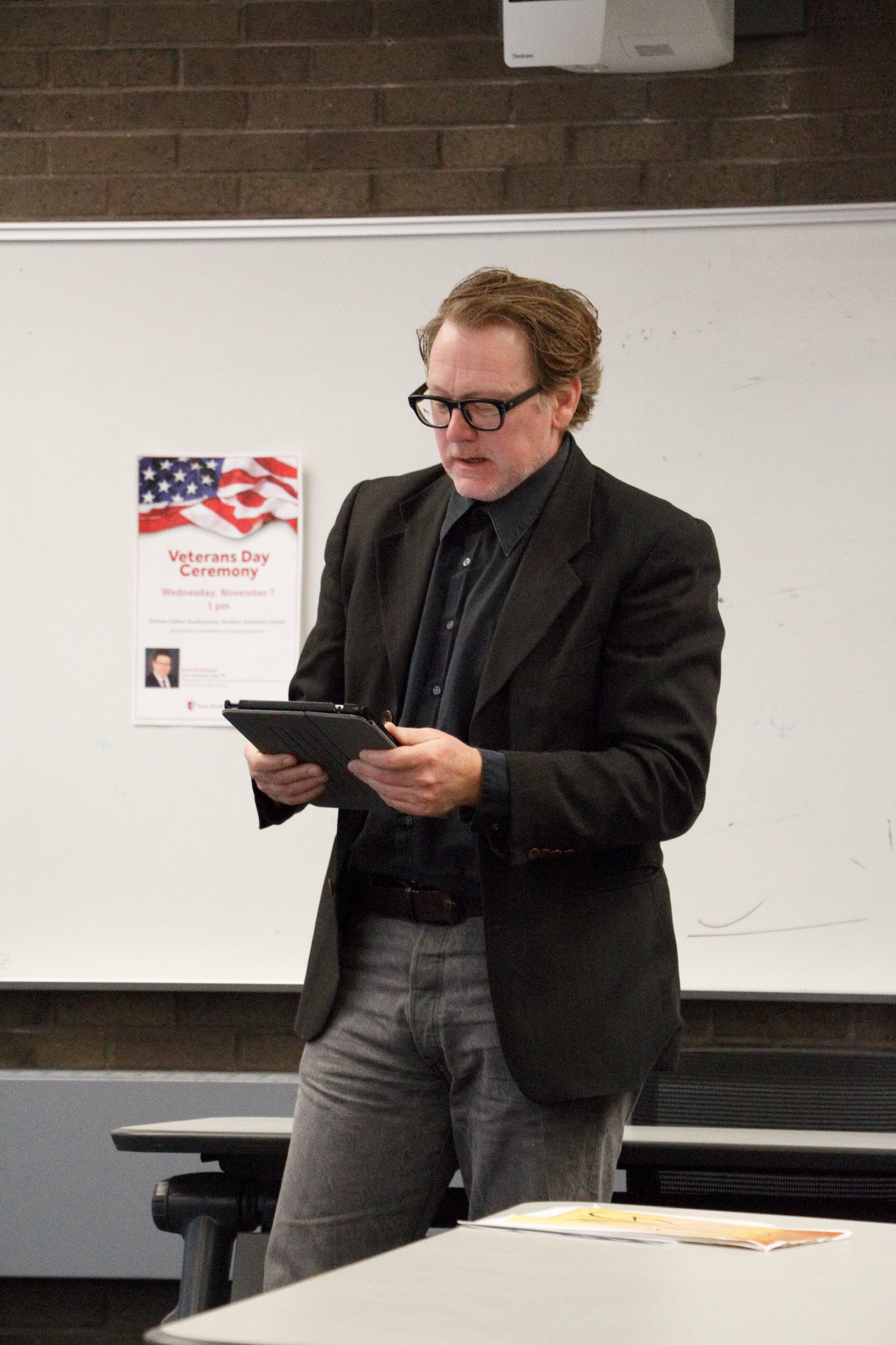 SBU Librarian Darren Chase reads a poem by Brian Turner